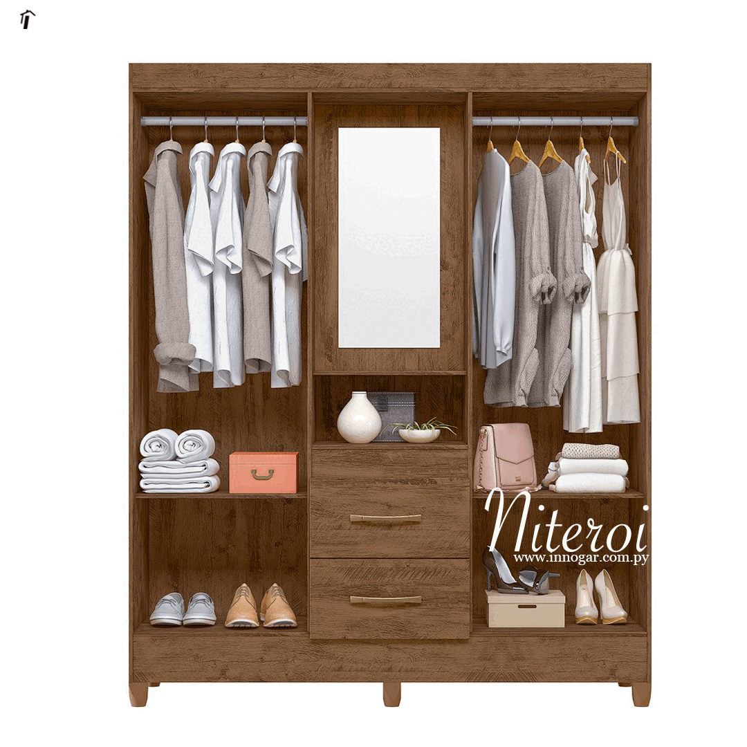 Descripcion del producto: 4 puertas , 2 cajones , espejos, Patas en PVC, 100% material MDP.